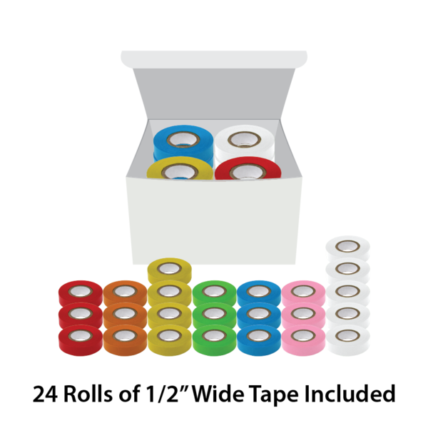 Labeling Tape, 1/2" x 500", Assorted Colors (5 white, 4 yellow, 3 blue, 3 green, 3 orange, 3 pinkGLO-LT-05X500RW