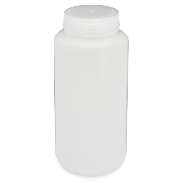 Bottle, Wide Mouth, Round, HDPE, 1000mL, Bulk Packed, Bottles and Caps Packed SeparatelyGLO-7511000BKS